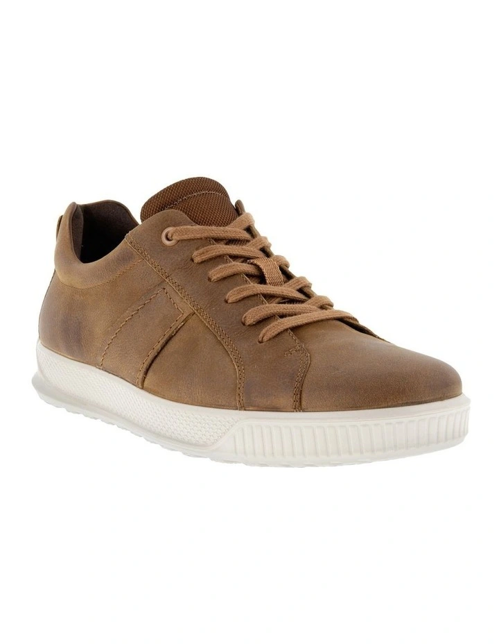 ECCO Byway Mens Sneaker Constructed in soft-textured nubuck leather, this version of the ECCO BYWAY Sneaker is a straightforward, no-fuss approach to a smart-casual shoe. Made with a slightly heavier sole and monochromatic stitching and laces for a simple, but still clean look, these will quickly become a wardrobe style hero for a range of outfits, no matter what the season.