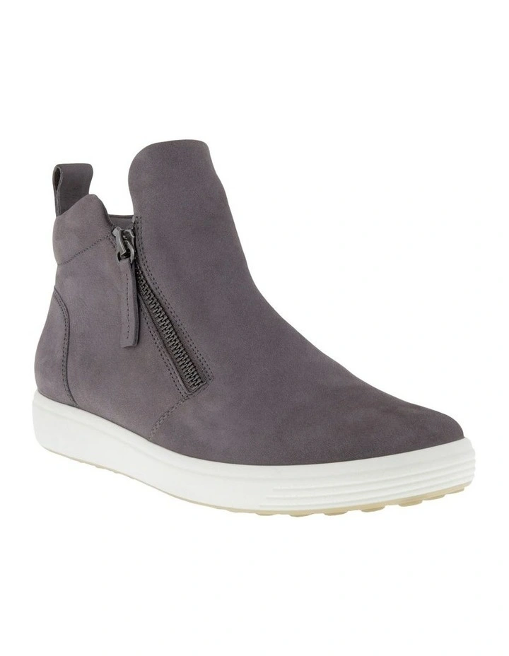 ECCO Soft 7 Womens Zipped Ankle Boot A wardrobe essential, this version of the ECCO SOFT 7 is a slick ankle boot that can be worn across multiple seasons. While certain styles feature an eye-catching snake print that makes a statement all on its own, this silhouette that pairs well with laid-back and smart casual looks alike.